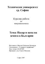 Пазарът на земеделски земи в България след приемането на Закона за собствеността и ползването на земеделските земи възниква и се изгражда изцяло върху пазарни взаимоотношения. Процесите и цените на този пазар са формирани...