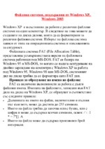 Файловата система FАТ (File Allocation Table), представлява усъвършенствана версия на файловата система, работеща под МS-DOS. FАТ се базира на Windows 95 и МS-DOS, когато се налага осигуряване на двойно зареждане на компютри с Windows XP за работа...