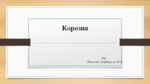 Корозията е процес на разрушаване на метали и техните сплави, който се предизвиква от химични и електрохимични реакции, протичащи под влиянието на външни фактори, и започва от повърхността...