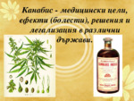 В презентацията е показано приложението на канабиса за медицински цели. Информацията засяга и степента на легализацията на медицинската марихуана и препарати съдържащи я, различните страни по света...