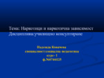 Описани са най-важните термини за посочената тема,видовете наркотични вещества и как въздейства, как се стига до зависимостта,външни белезе и последици...