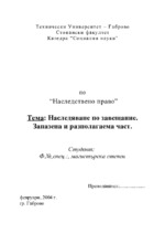“Наследствено право” Тема: Наследяване по завещание. Запазена и разполагаема част...