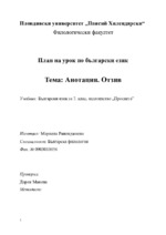 Методически план на урок по български език за 7-ми клас. Тема: Анотация. Отзив...