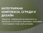 Курортно - рекреационни комплекси за временно и постоянно обитаване, комплекси с интегрирани голф клуб центрове...