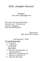 Шизофренията е група от сериозни мозъчни увреждания, която се проявява посредством халюцинации, налудности, нарушения в мисленето и поведението. Хората с шизофрения се отдръпват в един собствен вътрешен свят, белязан от психозата...