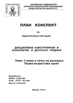План-конспект за първа възрастова група по ОН Конструиране и тегхологии в ДГ...