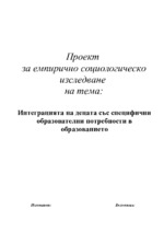 Емпирично социологическо изследване на тема: Интеграцията на децата със специфични образователни потребности в образованието...