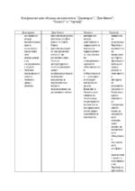 Конфликтът като сблъсък на ценности в “Декамерон”, “Дон Кихот”, “Хамлет” и “Тартюф” - под формата на таблица.
