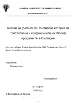 Анализ на учебник по българска история за третокласни и средни училища според програмите в България
