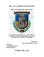 Българският народ с основание се гордее със своето народно творчество.То е израз на могъщите му духовни сили и жизнена енергия, на непрекъснатат му воля за творческо достижениевъв всички области на живота...