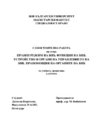 Режим на БНБ, основни понятия, през правен аспект. Основни точки на организация, устройство, функции, както точно представлява двуяката природа на БНБ, в унисон с лекциите на проф. Бобатинов...