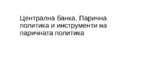 Централна банка. Парична политика. Инструменти на паричната политика