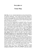 Томас Мор (1478-1535) e най-видният представител на ранния английски Ренесанс - виден английски хуманист, юрист, богослов, писател, поет, политик и дипломат, автор на множество произведения...