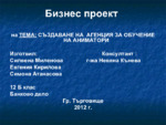 Целта на бизнес плана е основаване и развитие на дейността на Агенция, като водещ център за обучение на аниматори в България, според възможностите на бъдещата инвестиция...