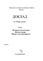 Пазарна сегментация. Целеви пазар. Избор и позициониране.