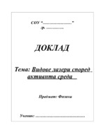 Лазерът е оптическо устройство, представляващо квантов генератор и е източник на монохроматична, кохерентна, насочена светлина, т.е. лазерът изпуска тънък, добре насочен, кохерентен лъч с постоянна дължина на вълната ( еднакъв цвят), постаянна фаза и...