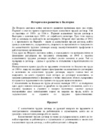Историческо развитие в България До Втората световна война неговото развитие преминава през два етапа. Първият е етап на правно нерегламентиран колективен трудов договор. Той се простира от 1905г. до 1936 г...