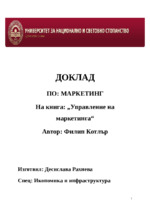 Доклад върху книгата "Управление на маркетинга" на Филип Котлър