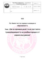 Как се променя ролята на учителя в трансформацията на учебния процес от знания към умения?