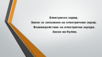 Електричен заряд. Закон за запазване на електричния заряд. Взаимодействие на електрични заряди. Закон на Кулон...