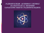 Радионуклиди. Активност. Период на полуразпад. Физични характеристики на радионуклидите...