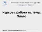 Курсова работа по информационни технологии за 1-ви курс. Презентацията съдържа: Физични и химични свойства. Получаване. Добив на злато (таблица и диаграма). Паричен обмен (таблица и диаграма)...