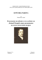 Влиянието на идеите и възгледите на Дейвид Рикардо върху развитието на икономическата теория