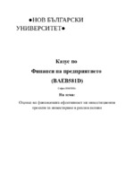 Оценка на финансовата ефективност на инвестиционни проекти за инвестиране в реални активи...