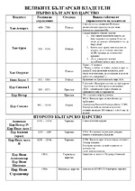 Великите български владетели от първо и второ българско царство, представени в таблица.