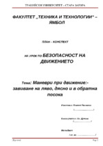 План-конспект на урок по безопасност на движението. Темата е във връзка с държавен изпит по дисциплината...