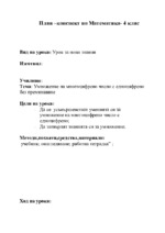 План–конспект на урок по математика за 4-ти клас