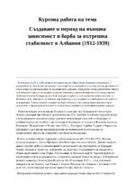 Извоюване на независимост, вътрешни и външни взаимотношения в Албания. Управление на Ахмед Зогу....