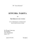 Вид на схемата: 2 диода и 2 тиристора; вид на товара - R - активен; входно напрежение - Uвх=220V; изходна мощност - Pизх=1,8kW; коефициент на мощността - cos...