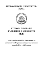 В курсовата работа се анализират основните активи на банката, качеството им и ефективното им използване. Курсовата работа е представена веднъж през периода на обучение 2014-2015 година и е оценена с максимален брой точки...