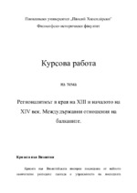 Регионализмът в края на XIII и началото на XIV век. Междудържавни отношения на балканите.