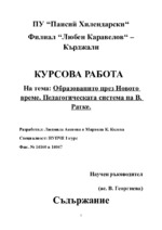 Куросва работа по История на педагогическите учения в България. Източника на материалите е Държавен архив- гр. Шумен....