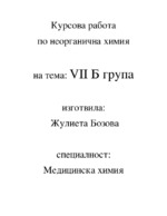 Oбща характеристика на елементите от групата. В VII б група са включени атомите на химичните елементи манган (Мn), технеций (Тc) и рений (Re)...