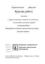 Техническото възпитание в детската градина е цел и резултат от изпълнението на техническа дейност от децата в образователно направление „Конструктивно-технически и битови дейности“...