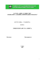 Курсова работа по дисциплината Лицензиране и авторско право. Курсовата работа е за процеса на лицензиране при книгите.
