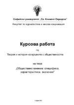 Дефиниция за обществено мнение. Възникване на ОМ. Характеристики на общественото мнение. Специфика на общественото мнение. Изследвания и диагностициране на ОM. Значение на общественото мнение...