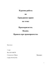 Курсова работа по Гражданко право. Тема: Правоприемство. Видове. Правила при правоприемство. Възникването на субективното право е не просто установяване на връзката между субекта и субективното право, а представлява тепърва създаване на ново гражданско...