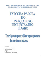 Брачният процес се отличава с особен предмет – брачните искове, чиято задача е отстраняване на унищожаеми бракове, прекратяване на дълбоко разстроените...