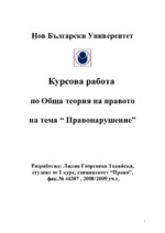 Нов Български Университет Курсова работа по Обща теория на правото на тема “ Правонарушение” Разработил: Лилия Георгиева Телийска, студент от І курс, специалност “Право”, фак.№ 44387 , 2008/2009 уч.г. Правонарушението представлява понятие на общата...