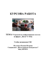 В настоящата курсова работа е разгледана и описана Управленската информационна система на фирма „Пегас” Г ООД, като е обърнато по-голямо внимание на търговския отдел и информационното управление, което използва...