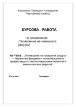 Мотивирането и стимулирането на човешките ресурси във фирмата са перманентна дейност, която се извърщва от ръководителите. Методичното ръководство на този сложен процес е поверено на отдела, който се занимава с непосредсвеното управление на тези...