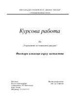 Настоящата курсова работа е разработена във връзка с учебната дисциплина “управление на човешките ресурси” с преподавател доц. д-р Георгиев целта на разработката е да се съберат, обработят и анализират статистически данни по следните направления...