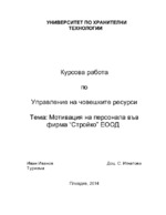 Обект на изследване в настоящата курсова работа е мотивацията на персонала в предприятие...