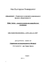 В курсовата работа е засегната темата за социалните мрежи. Подкрепям тезата, че Туитър е по-скоро микроблогинг платформа отколкото социална мрежа за разлика от Фейсбук. Сравнение на двете социални мрежи...