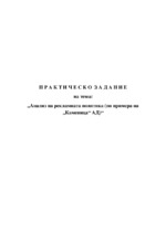 Целта на практическия проект е анализ на рекламната политика на реално функционираща фирма. Теоретичен преглед на методите за оценка на рекламната политика. Практическо приложение на методите за оценка на рекламната политика в реалната пазарна среда...