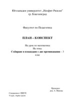 План-конспект по математика,предназначен за студенти 4ти курс. Разработен е урок по математика за 3 клас, тема на урока: "Събиране и изваждане с две преминавания"...